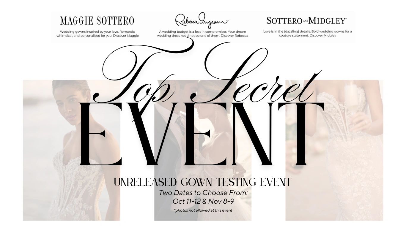 Be the first bride on the West Coast to preview, try on, and order a gown straight from the designer’s test collection! These unreleased gowns aren’t part of the current line, making this a rare opportunity to wear a one-of-a-kind creation by head designer for Maggie Sottero - and share your feedback directly!